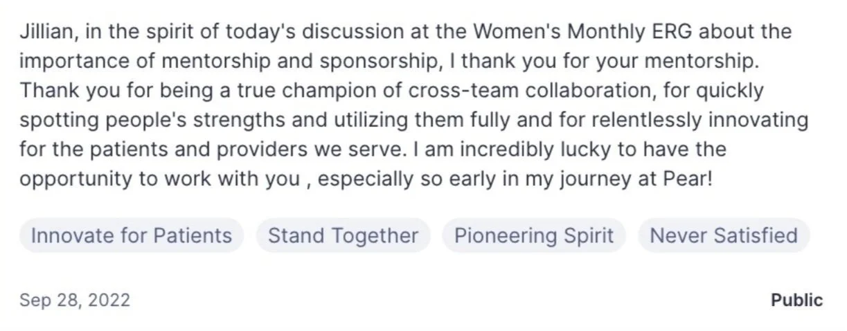 Jillian is one of the most passionate & impactful design directors I've ever had the privilege of working with. During our time together at Pear Therapeutics, Jillian created engaging + inclusive user experience for our patients living with substance use disorder using her unparalleled skills as a visual and interaction designer. Then, she grew into a profoundly influential design leader -- managing a team of designers, researchers, and patient advisors to build entirely new experiences that elevated the patient dignity + improved health outcomes for people using our digital therapeutics. Along the way, Jillian connected our entire organization to its sense of purpose. She was strategic in pushing for initiatives that had an impact on both the quality of our patient experience and bottomline revenue for the organization, proving to all of us that our organization would always be most successful when it did right by our patients. Yes, Jillian is a strategic and powerful design leader. But, most of all, I will always remember her for her kindness.