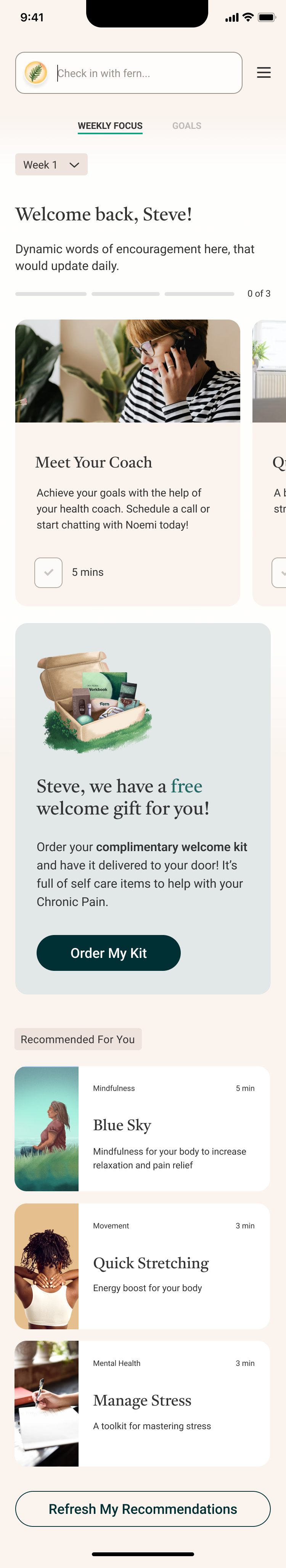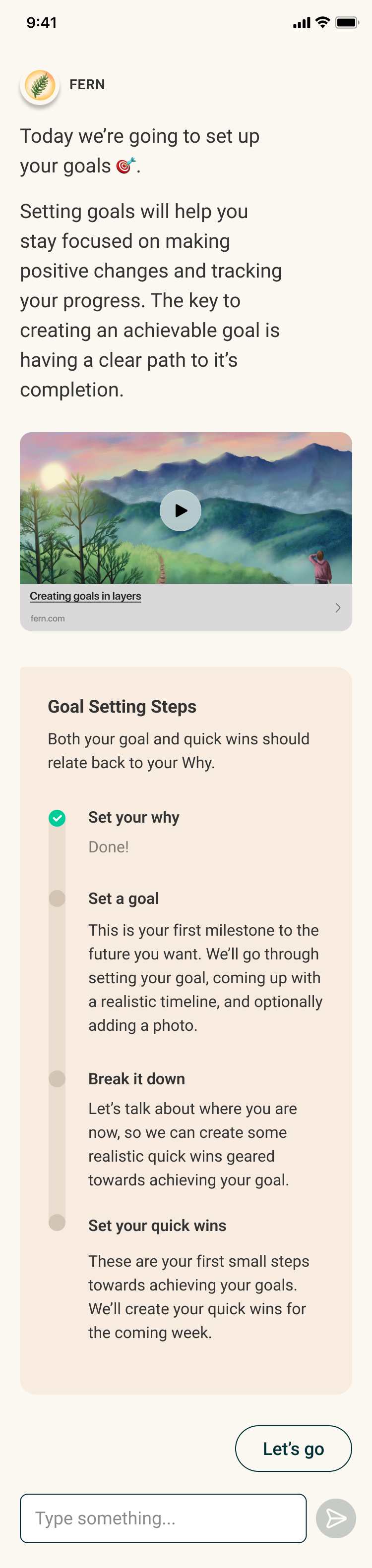 This shift turned passive intentions into actionable steps, fully embedded into the care plan. It allowed users to move from wishing for change to working toward it, with Fern guiding the way.